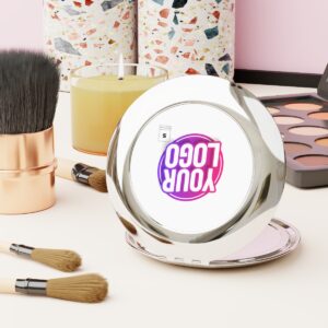 This personalized compact mirror is the perfect makeup gadget for touching up on the go. Made to be travel-friendly, cute, and shiny, it comes with a secure-snap friction closure, a sleek round shape and a metal finish for extra stylish points. Put your designs on the white metal insert and create the perfect travel makeup mirror.